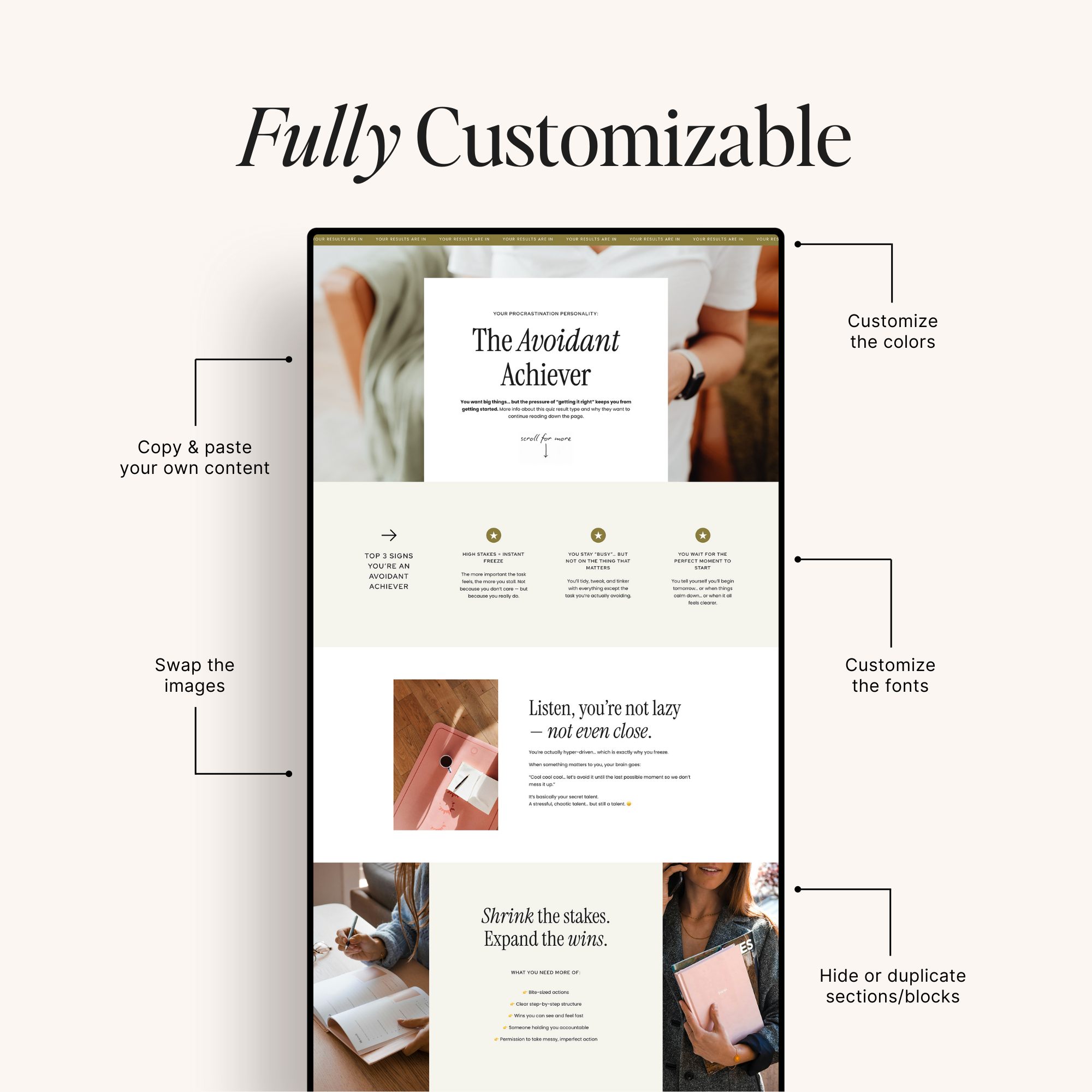 Want to swap sections? Easy. Add a testimonial? Done. Rearrange your entire page to flow with your message? You’ve got this.