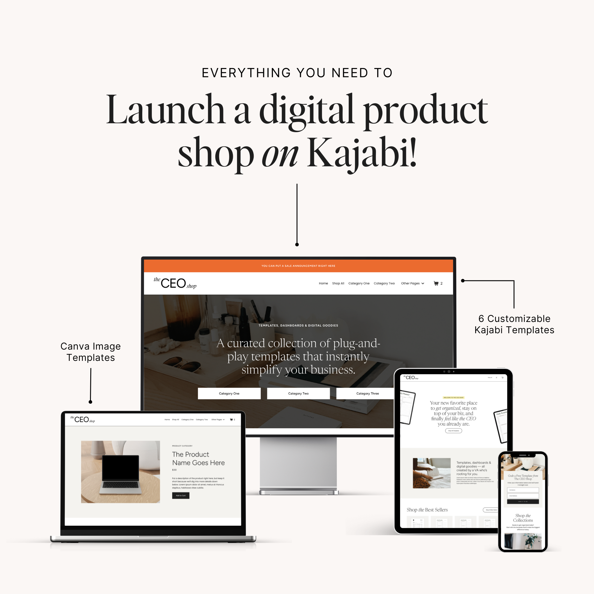 Whether you sell digital products, courses, memberships, templates, or a mix of everything… this kit turns your Kajabi site into a polished, conversion-ready shop without hiring a designer or rebuilding from scratch.