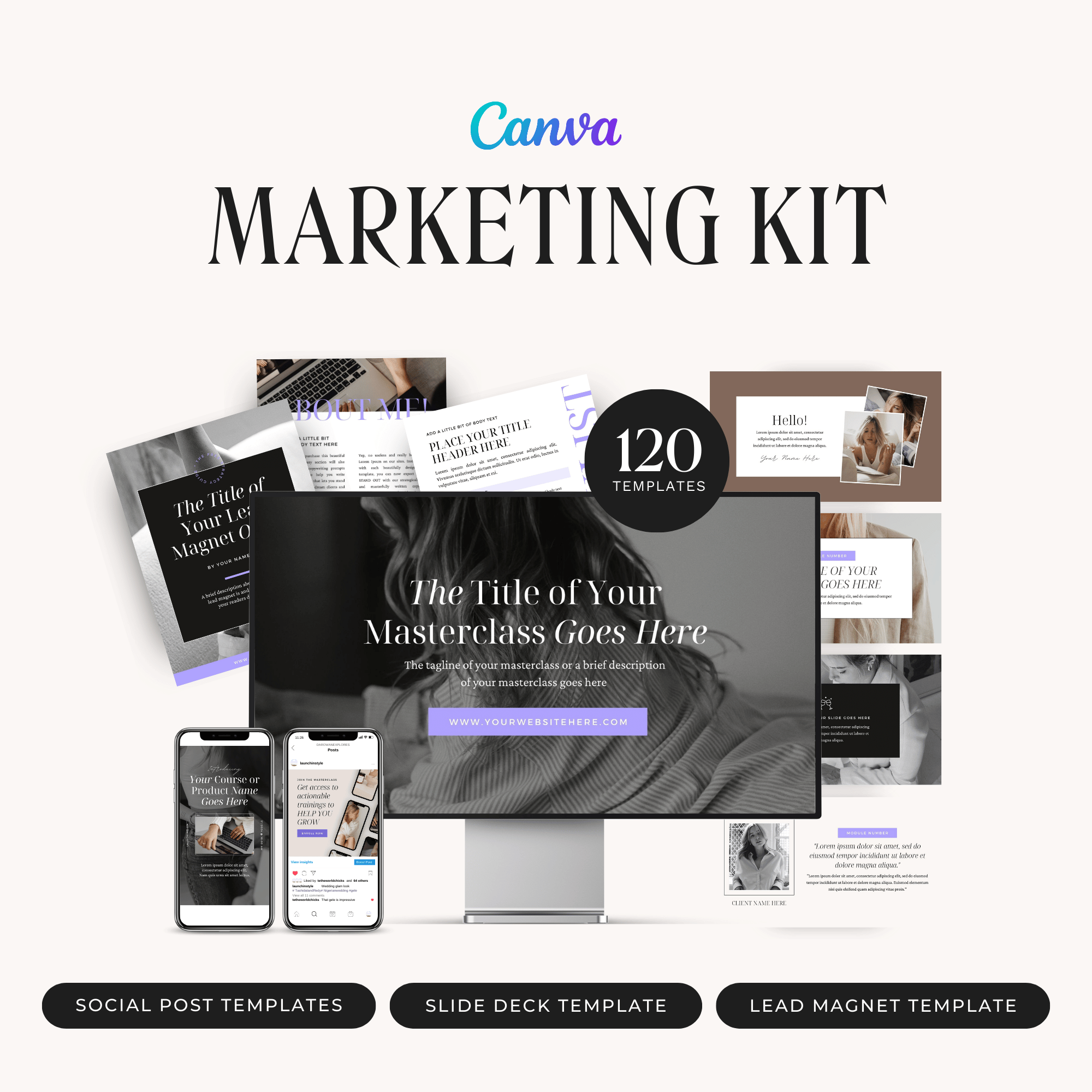 Grab the coordinating Elle Canva Marketing Kit to share your offers, freebies & more!