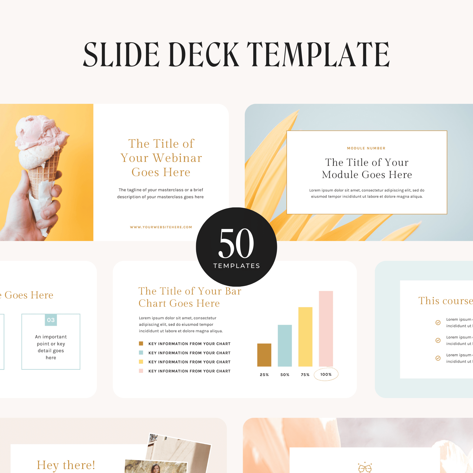 Use the slide deck template to host live webinars, create summit content and record lesson content for your digital offers.