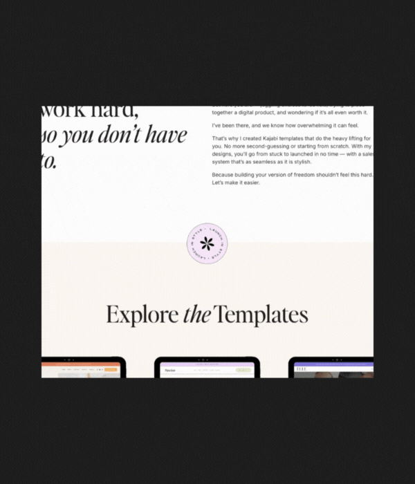 By using any code or instructions provided in this Kajabi Code product, you acknowledge and agree that you are doing so at your own risk. All code is provided “as is,” and Launch in Style makes no guarantees regarding its performance or compatibility with your specific setup. Launch in Style is not responsible for any issues that may arise from implementing the code, including—but not limited to—site malfunctions, styling errors, lost data, or access issues.