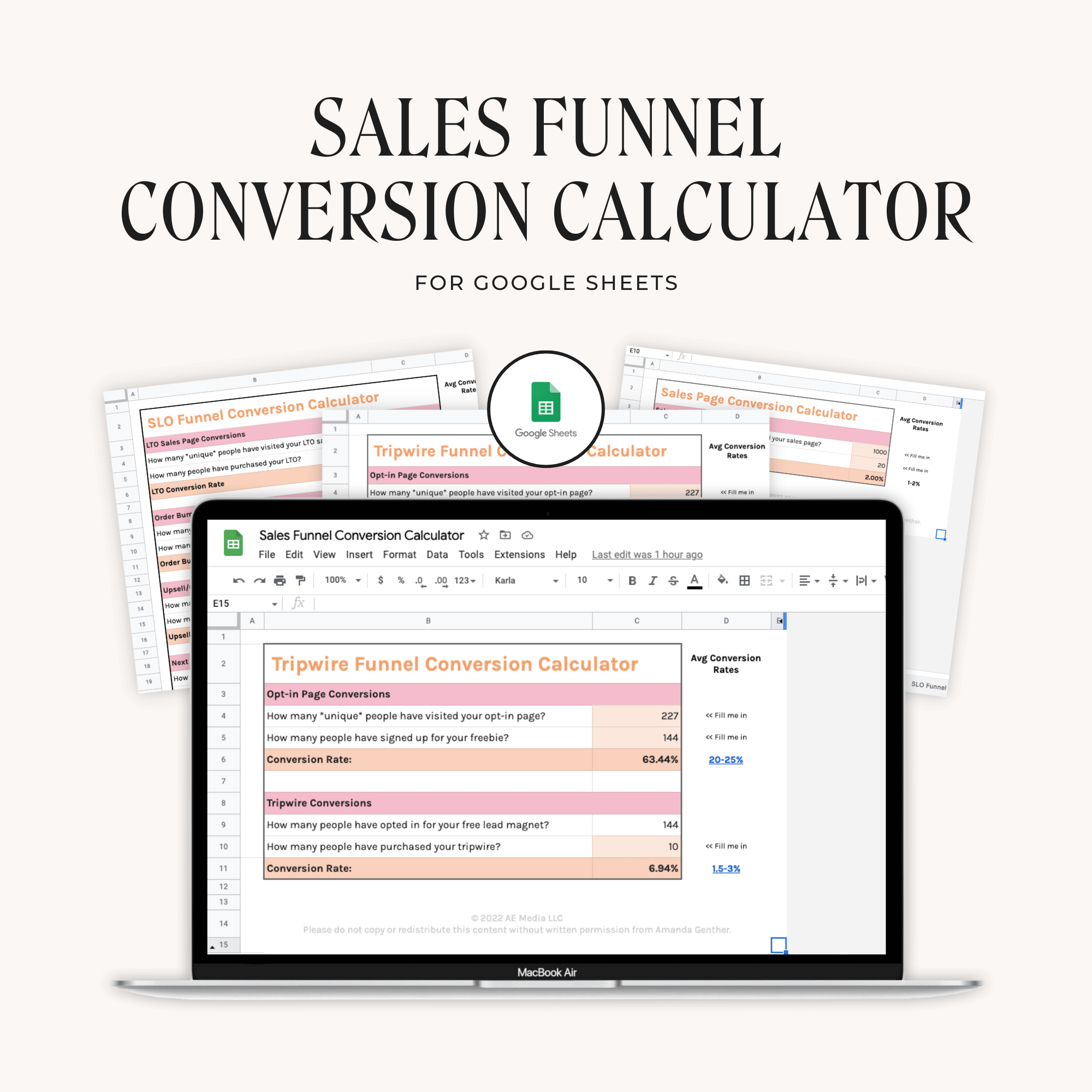 Stop wondering whether or not your sales funnel is working, and KNOW for sure with this Sales Funnel Conversion Calculator spreadsheet template for Google Sheets.