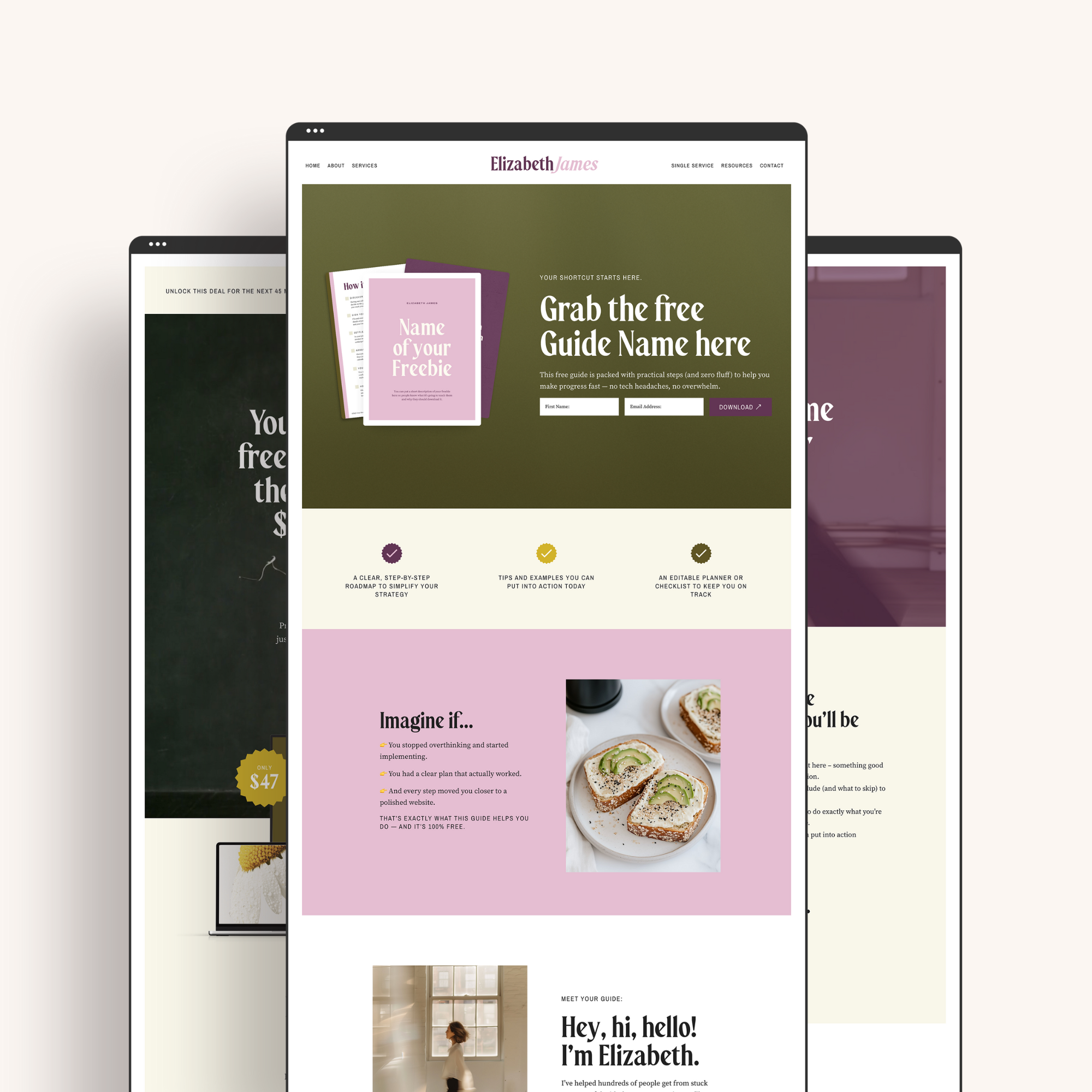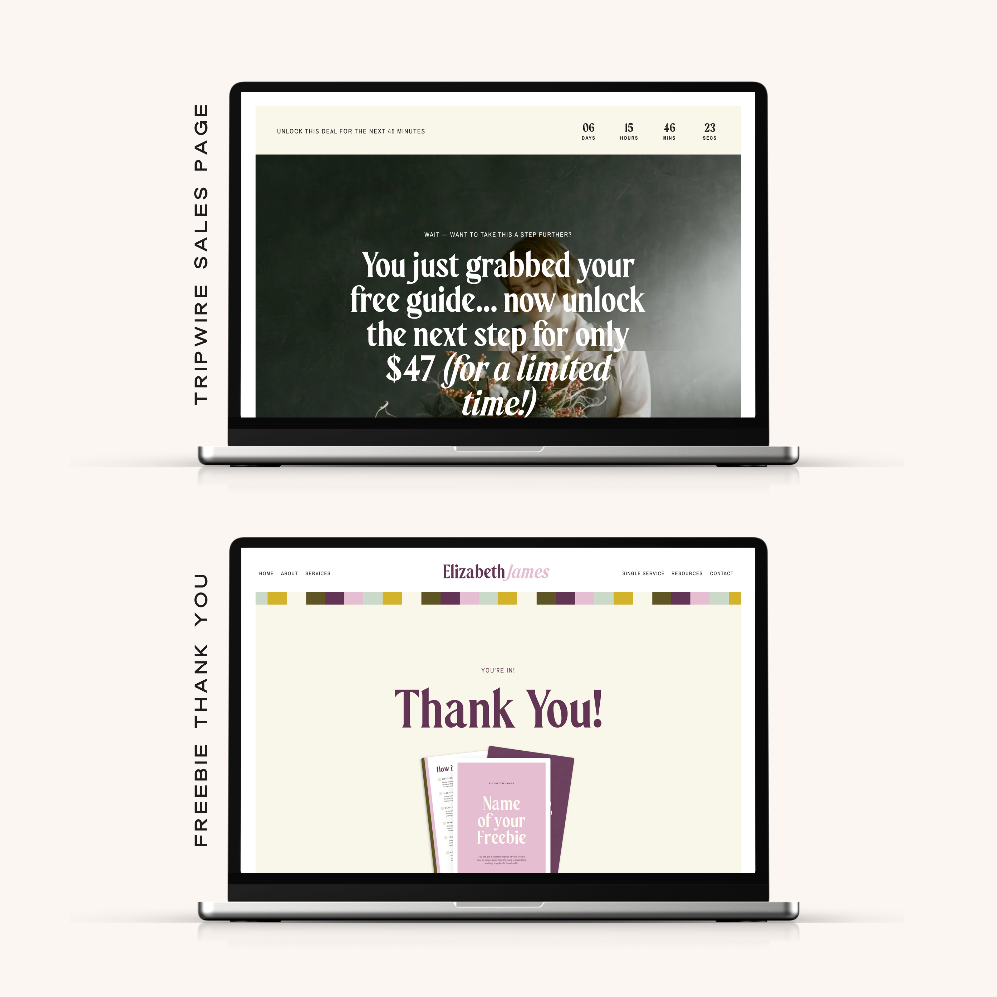 • A freebie thank you page to deliver your download and guide subscribers to their next step.