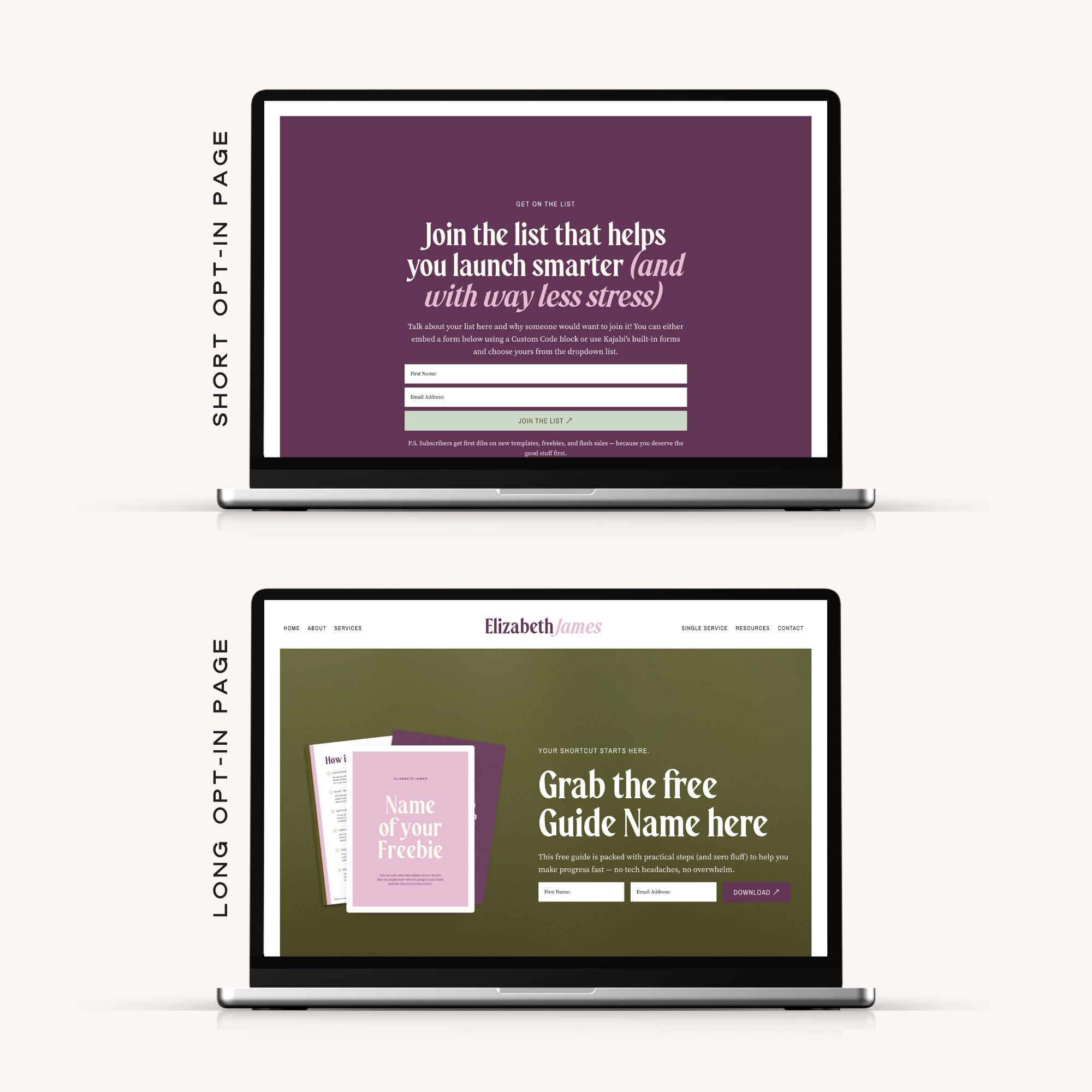 • A short opt-in page for quick conversions and a long opt-in page for when you want to share more details about your freebie or offer.