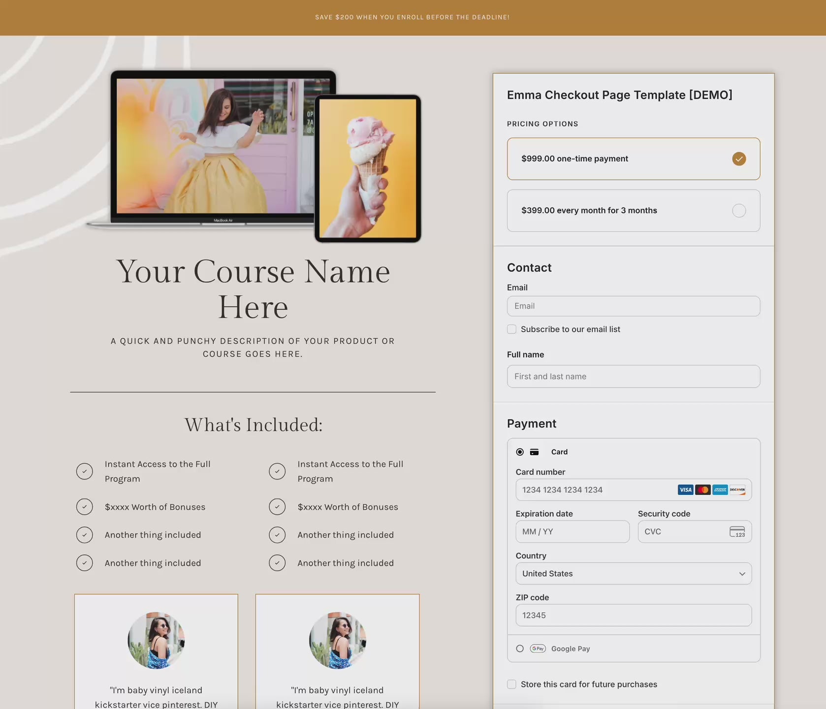 Emma Checkout Page Template