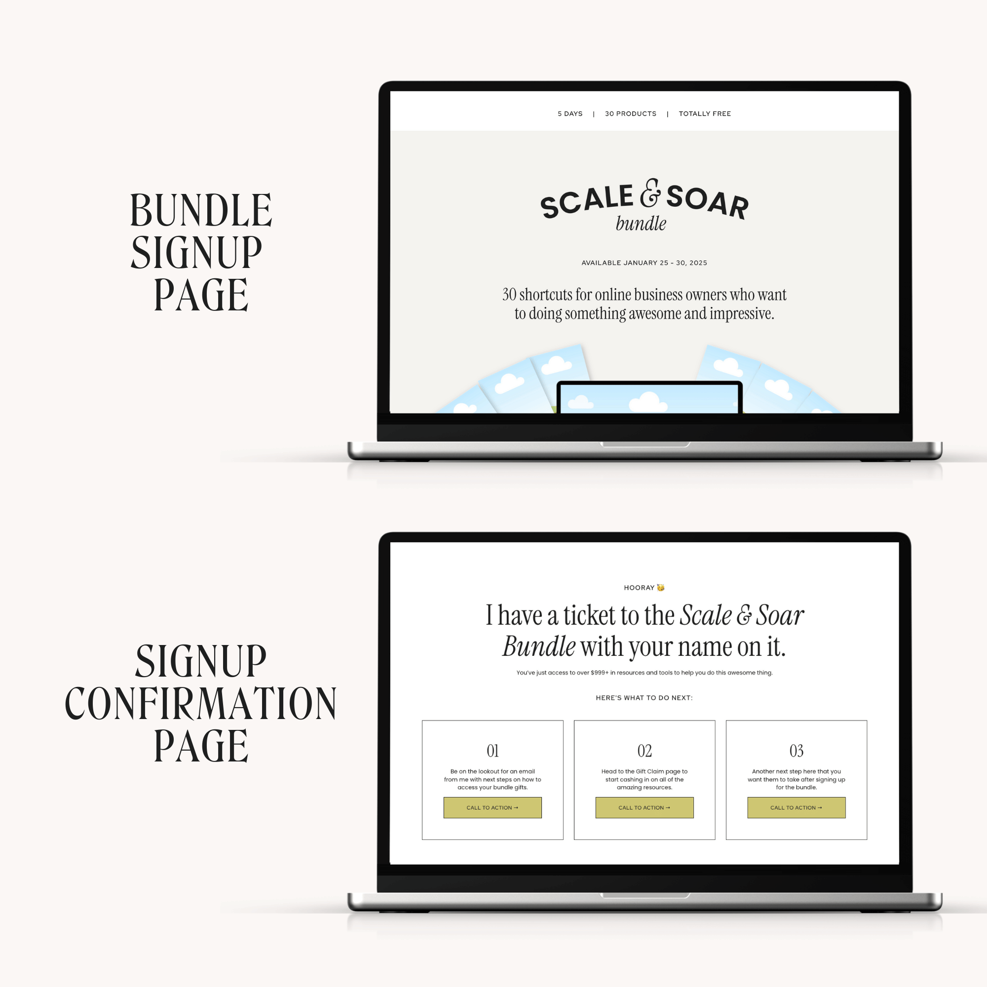 Let’s skip the tech headaches and endless hours building a funnel from scratch. The Bundle Funnel Kit is here to rescue your time, sanity, and collaboration dreams.
