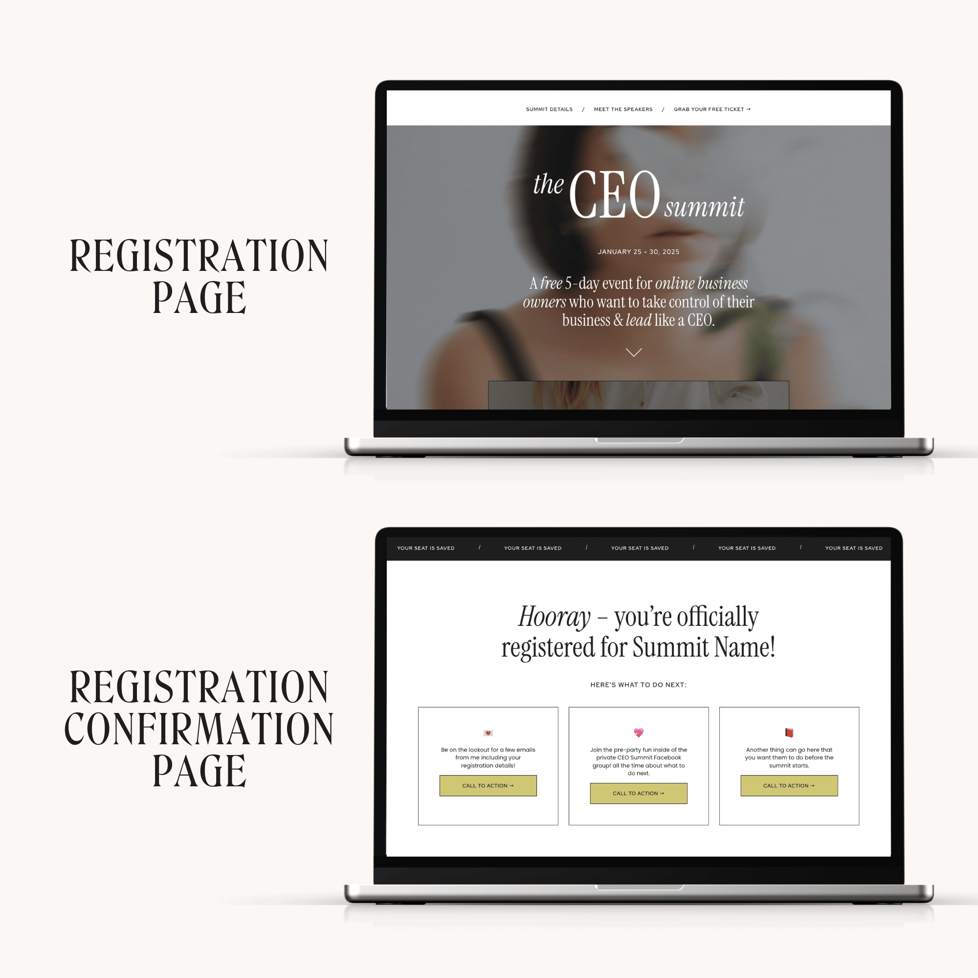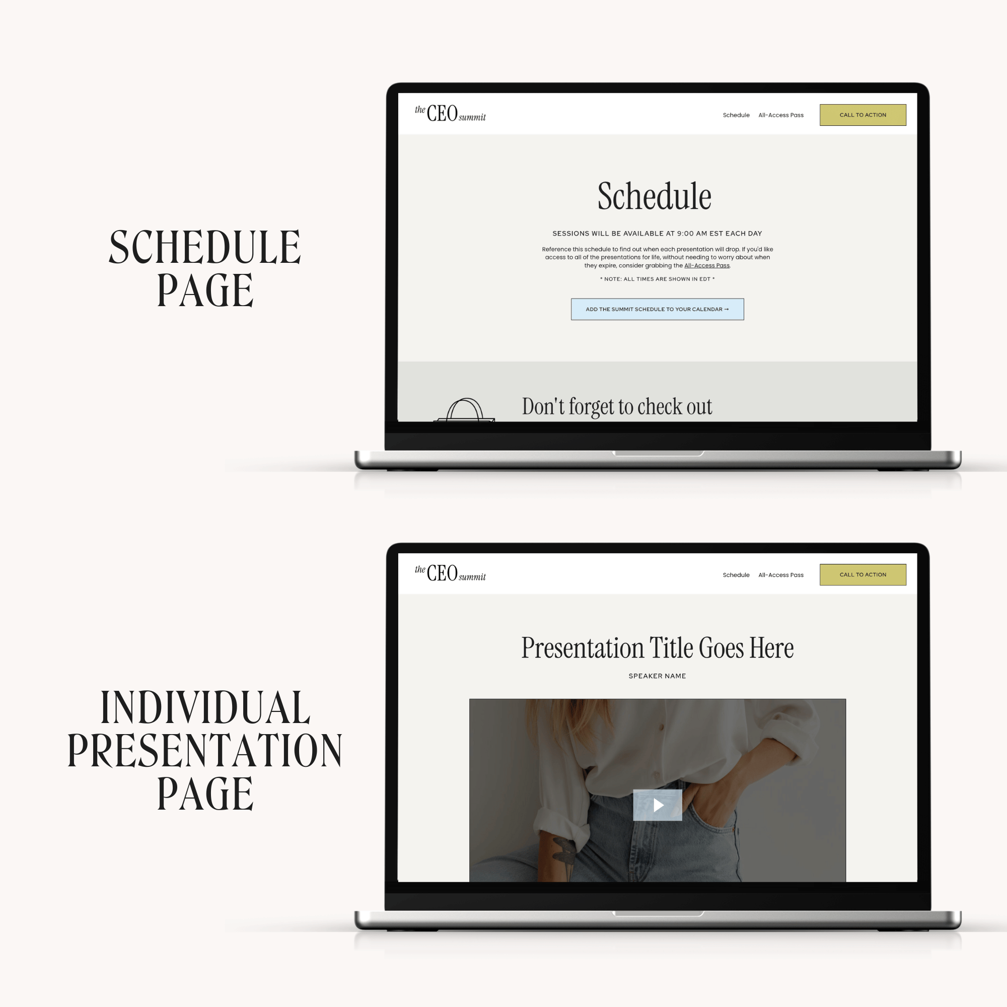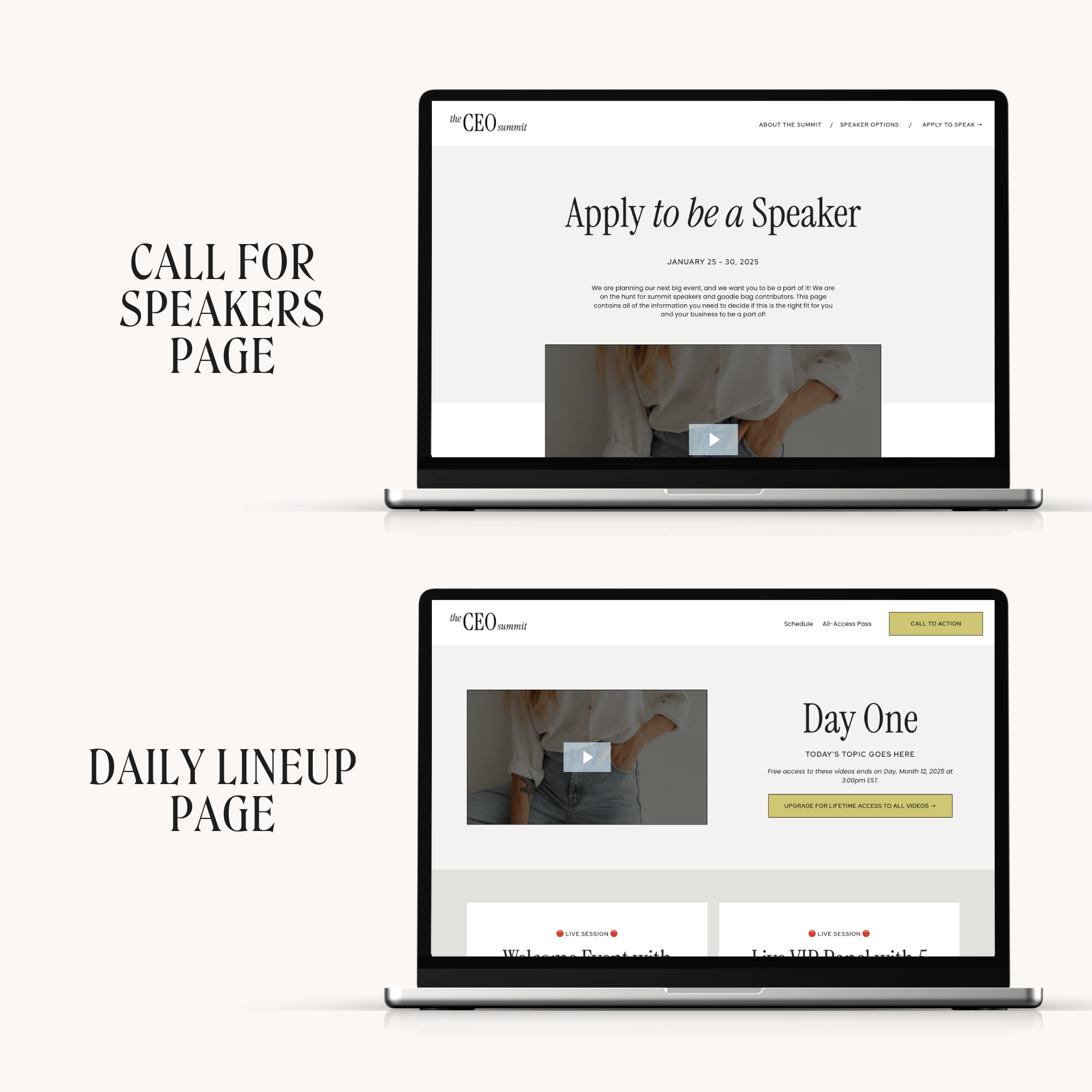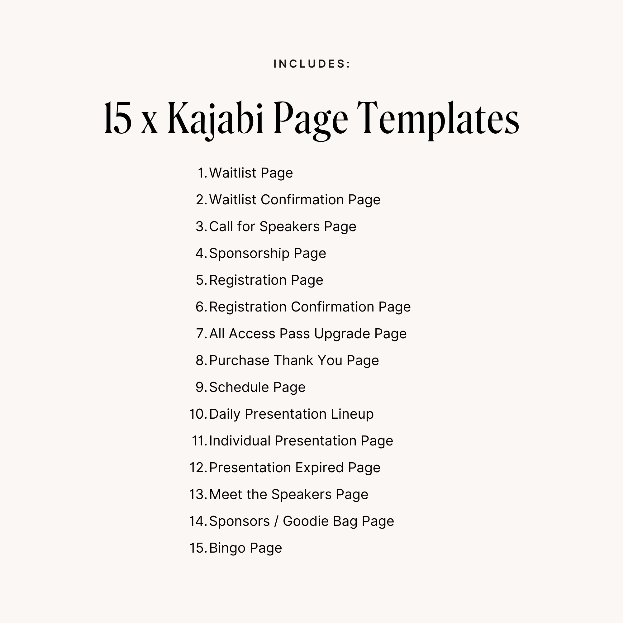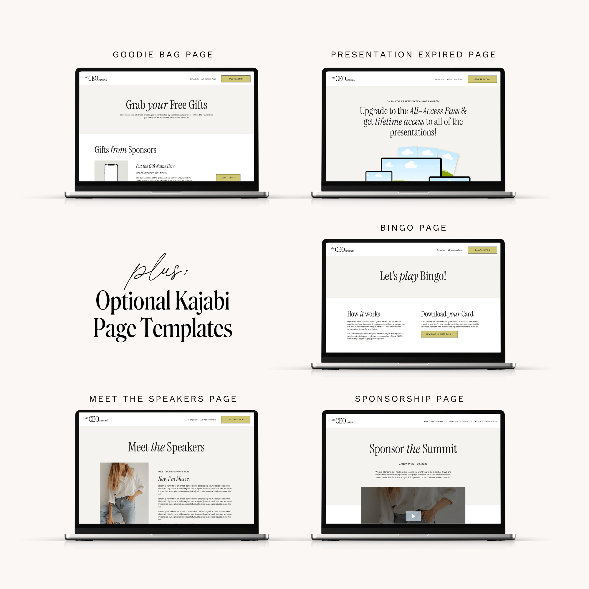 🎤 15 Kajabi page templates – Professionally-designed and easy-to-customize pages for every step of your summit funnel.