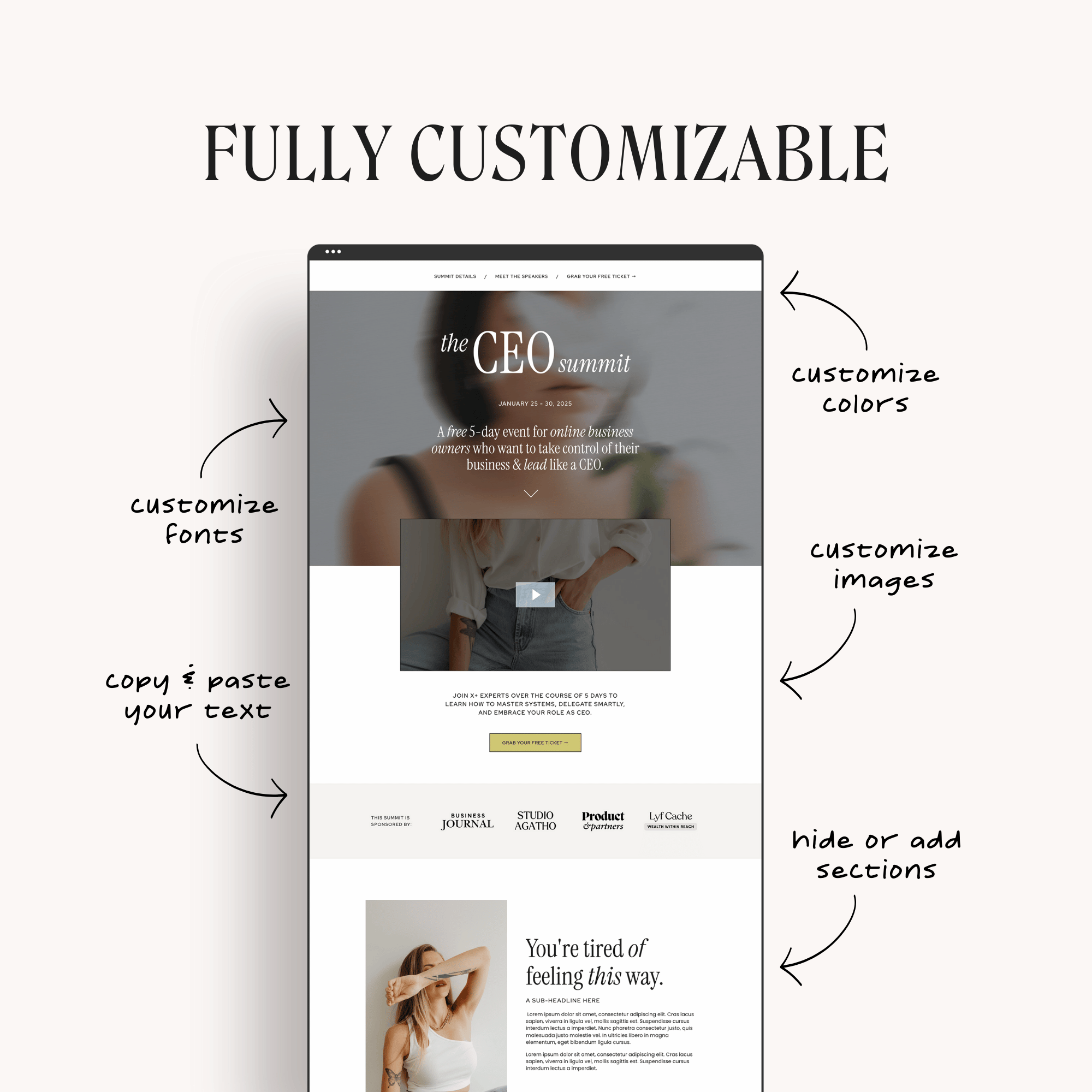 Your business isn’t one-size-fits-all — and your website shouldn’t be either. With our Kajabi templates, you’re in total control. Every section is fully customizable and built to flex with your content, offers, and style.