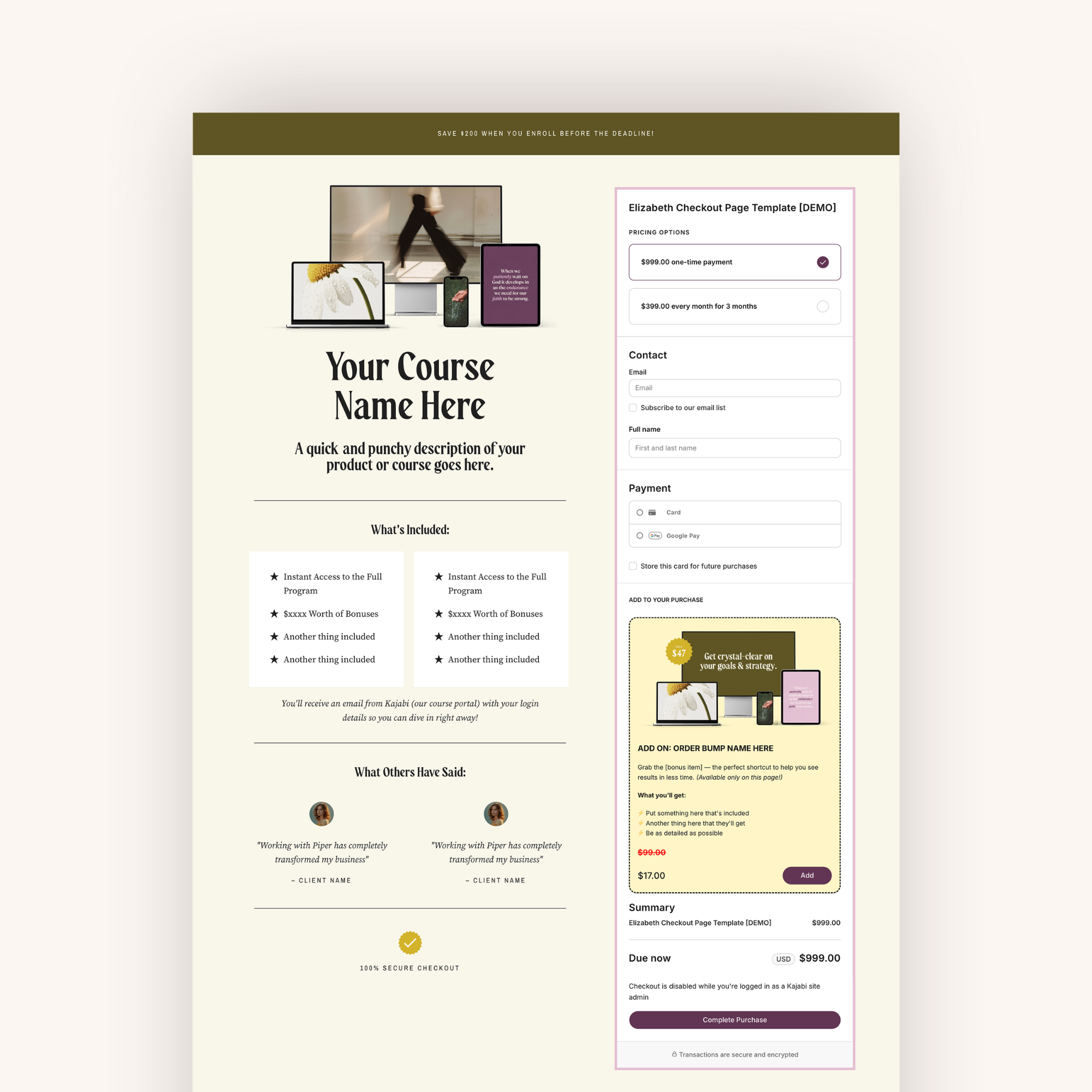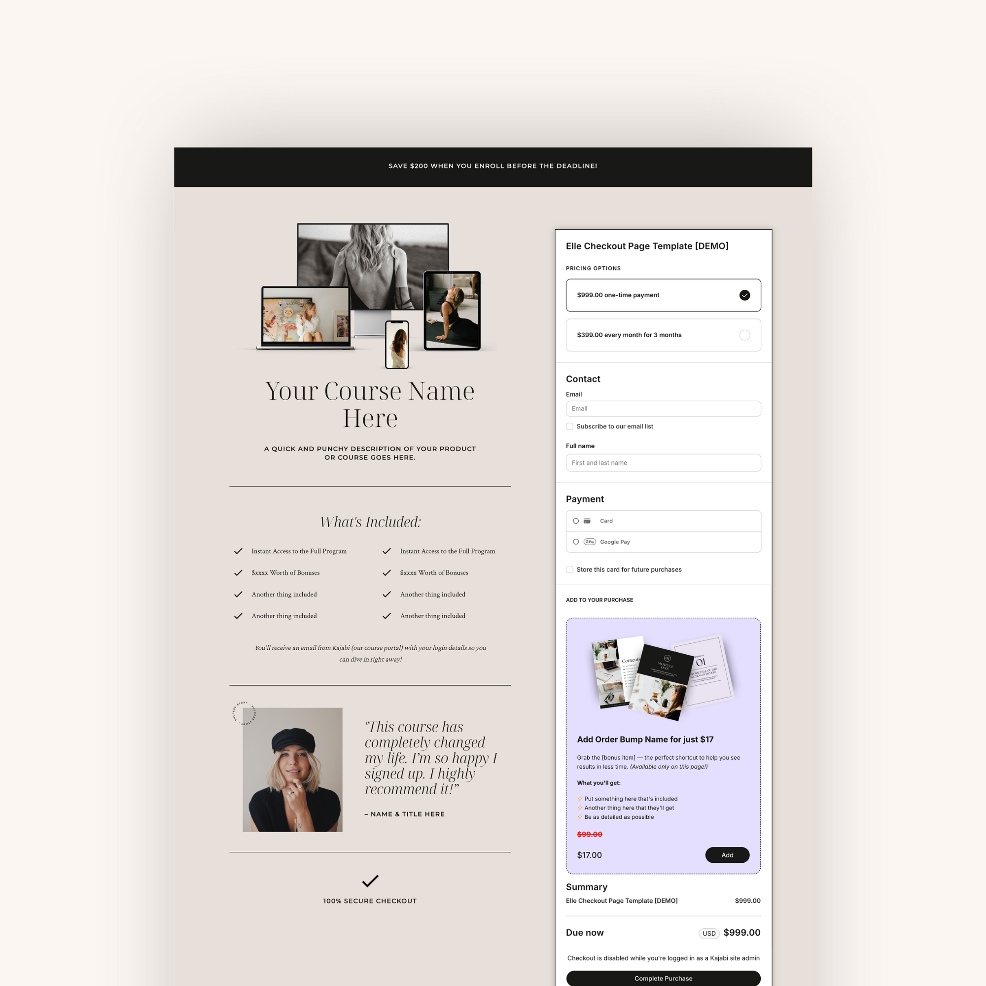 Upgrade your checkout experience with professionally designed Kajabi Checkout Page Templates built to boost conversions and make buying from you feel effortless.