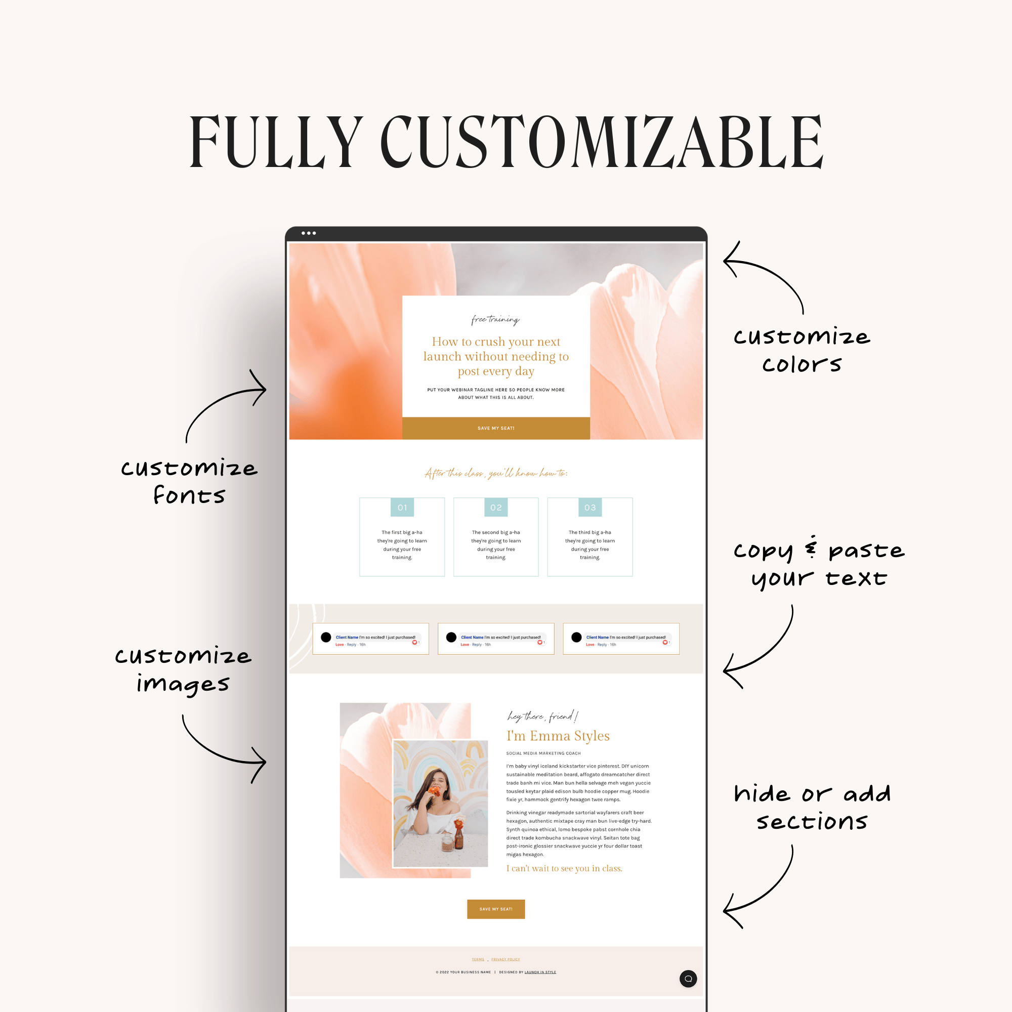 BUNDLE & SAVE - This kit is included inside of the Emma Sales Funnel Bundle. If you're looking for a cohesive look for all of your landing pages, grab the bundle to save over 20%.