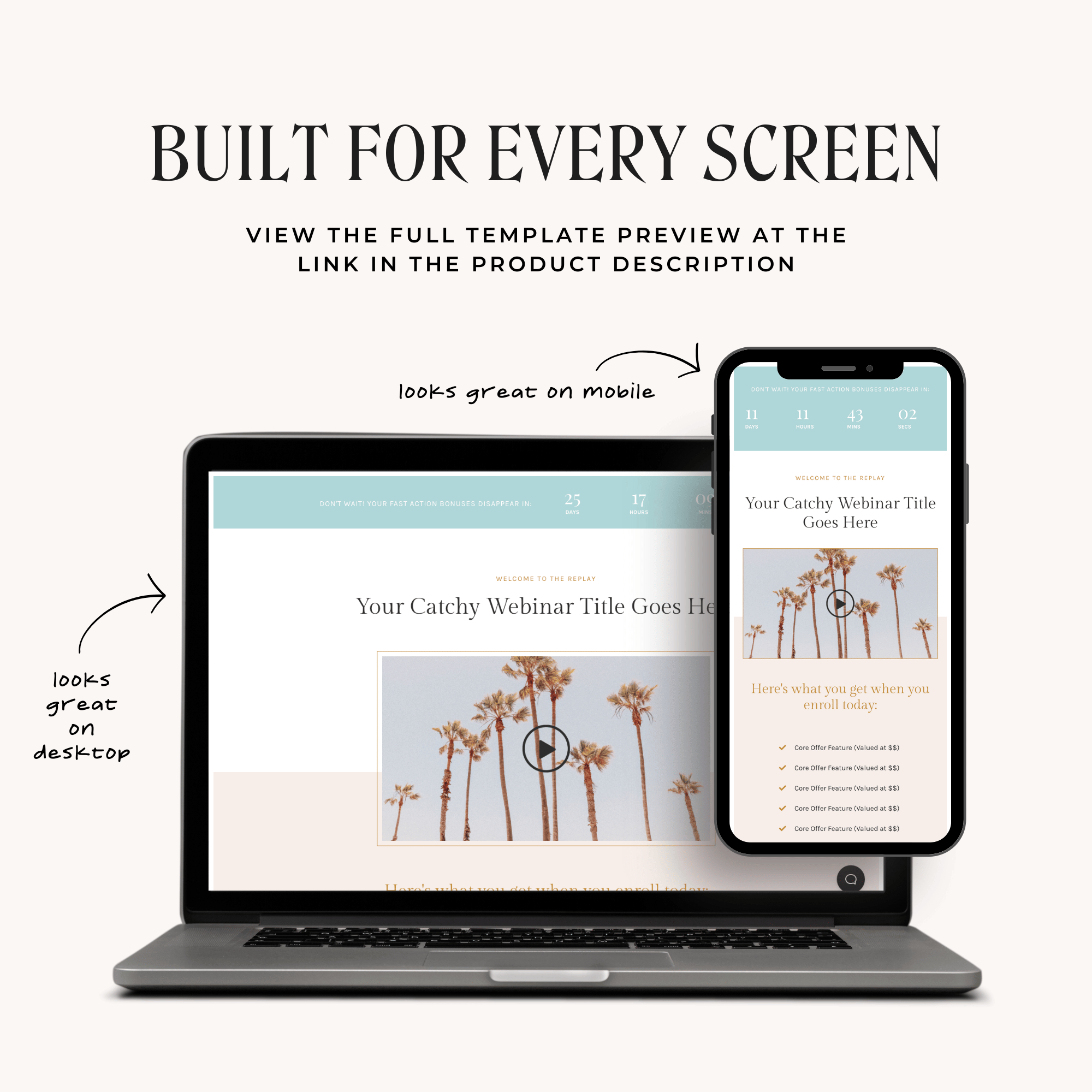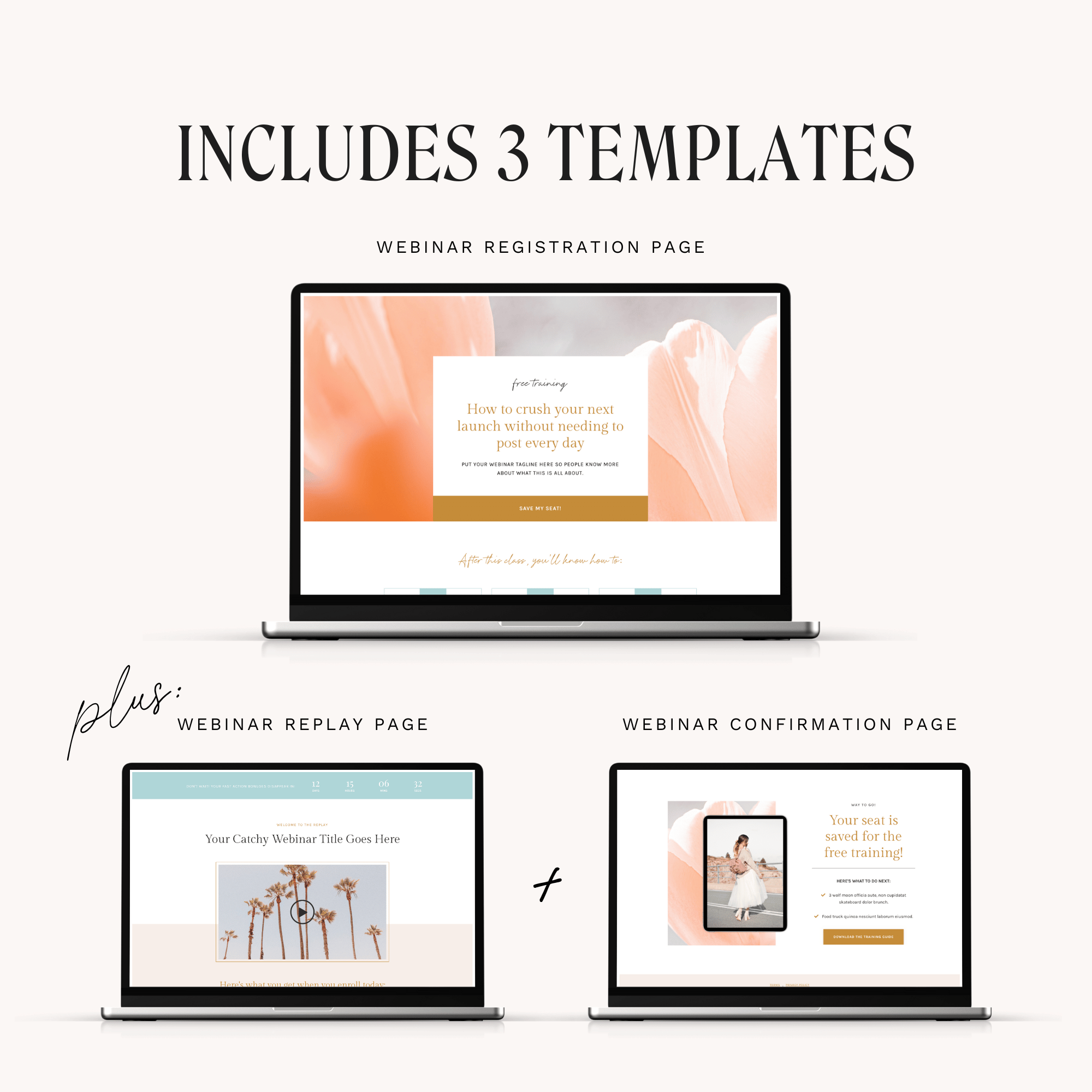 • A matching Webinar Replay Page Template to host your webinar replay and invite attendees to join you inside of your signature program or course.