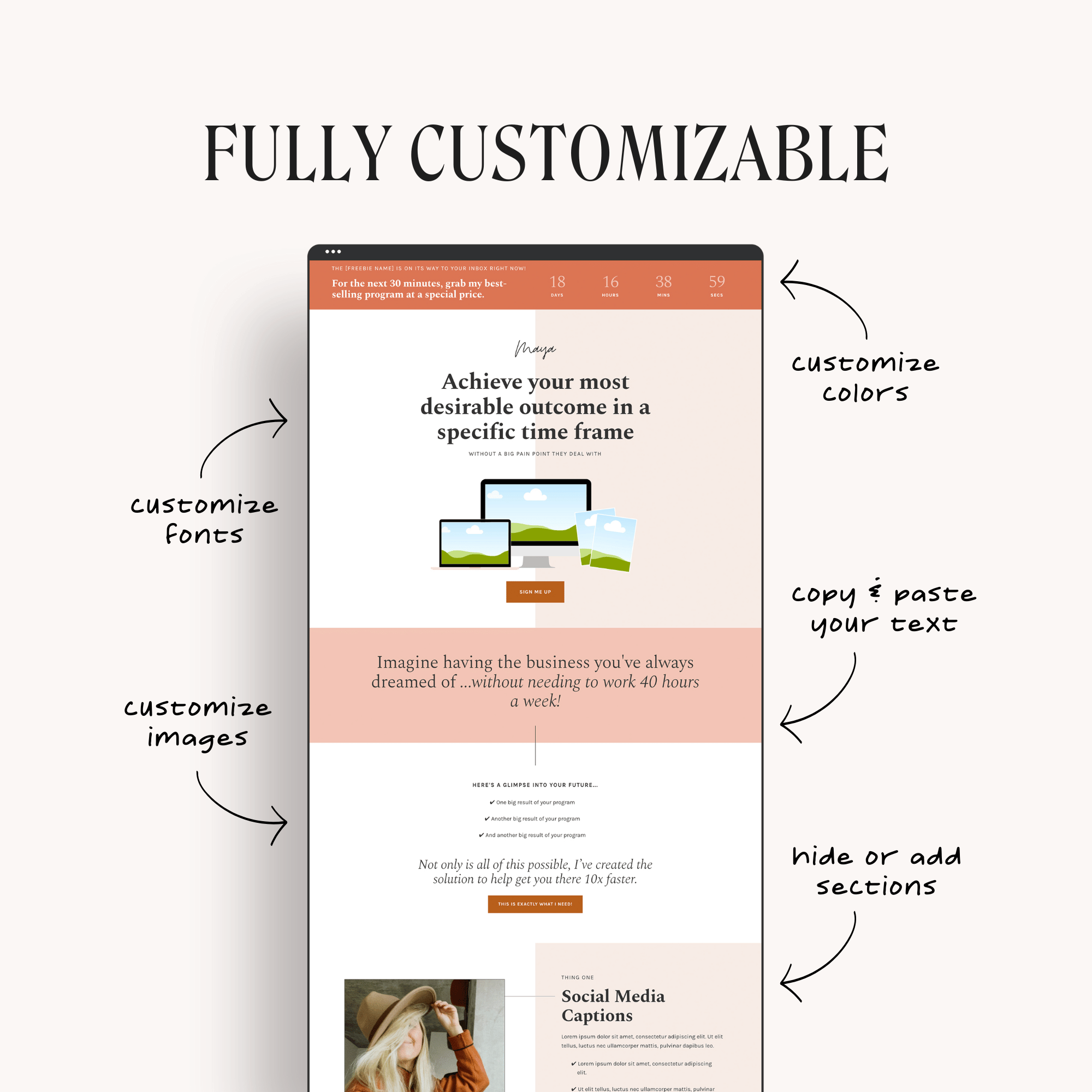 • A coordinating Tripwire Sales Page Template so you can turn your subscribers into new customers by offering them a limited-time deal immediately after they opt-in for their free gift.