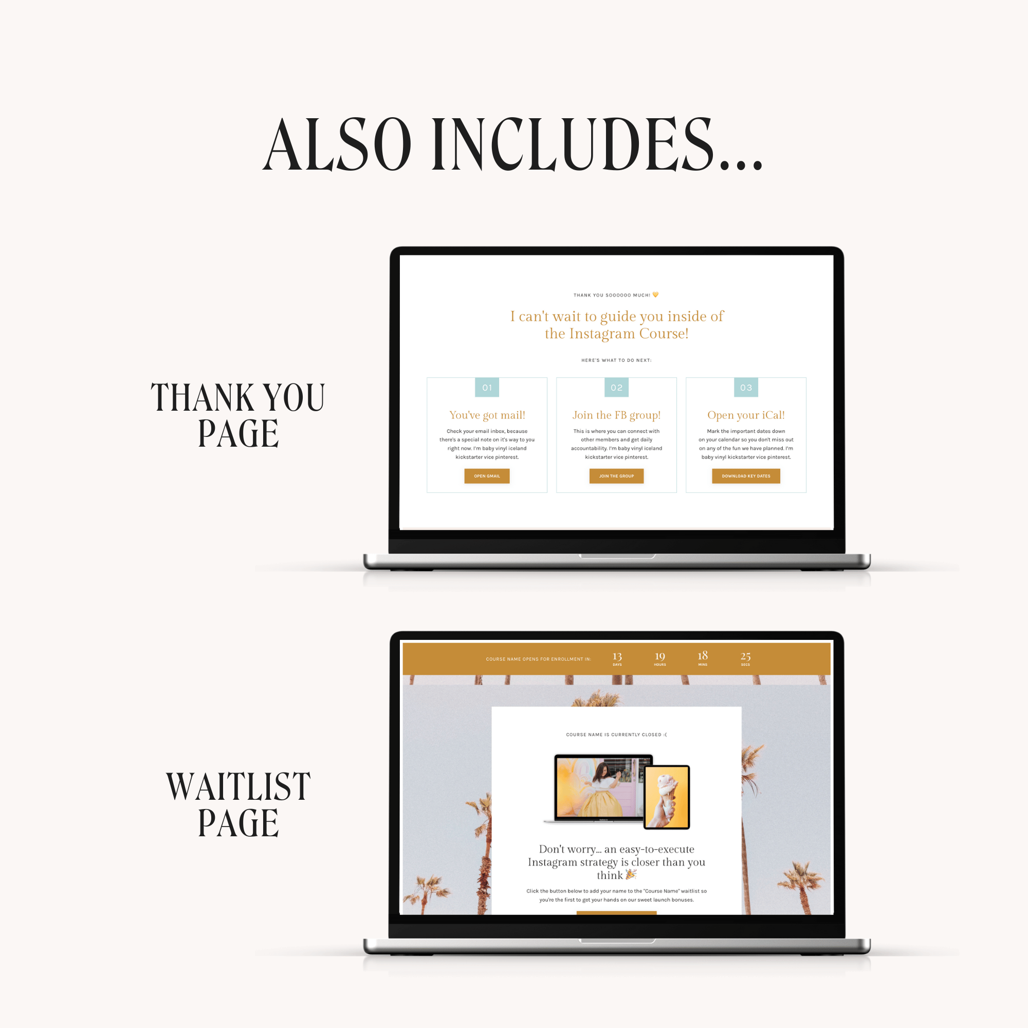 ✔️ A coordinating Waitlist Page Template so you can build anticipation and interest for your course even after you close the doors.