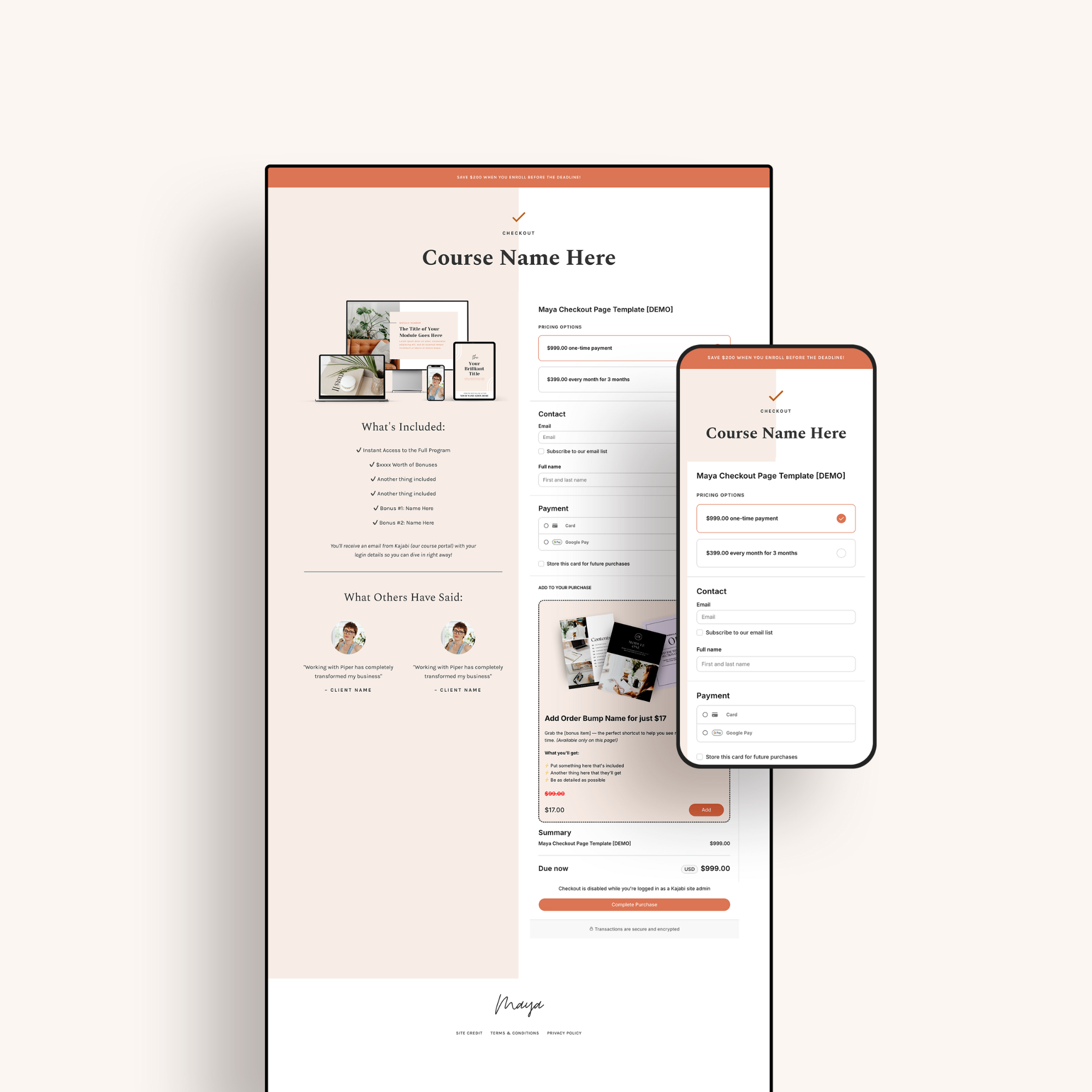 Perfect for courses, memberships, digital products, or any offer you sell on Kajabi. Just plug in your content, update your branding, and launch a checkout page that actually works.