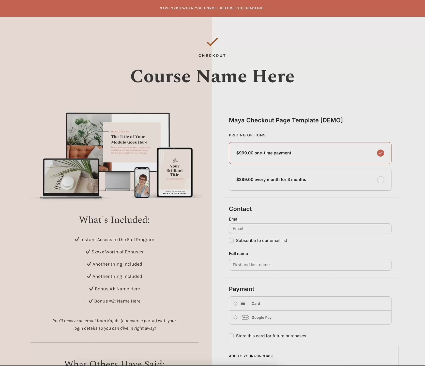 Make your checkout look legit, polished, and ready to convert with this easy-to-customize Kajabi Checkout Page Template.