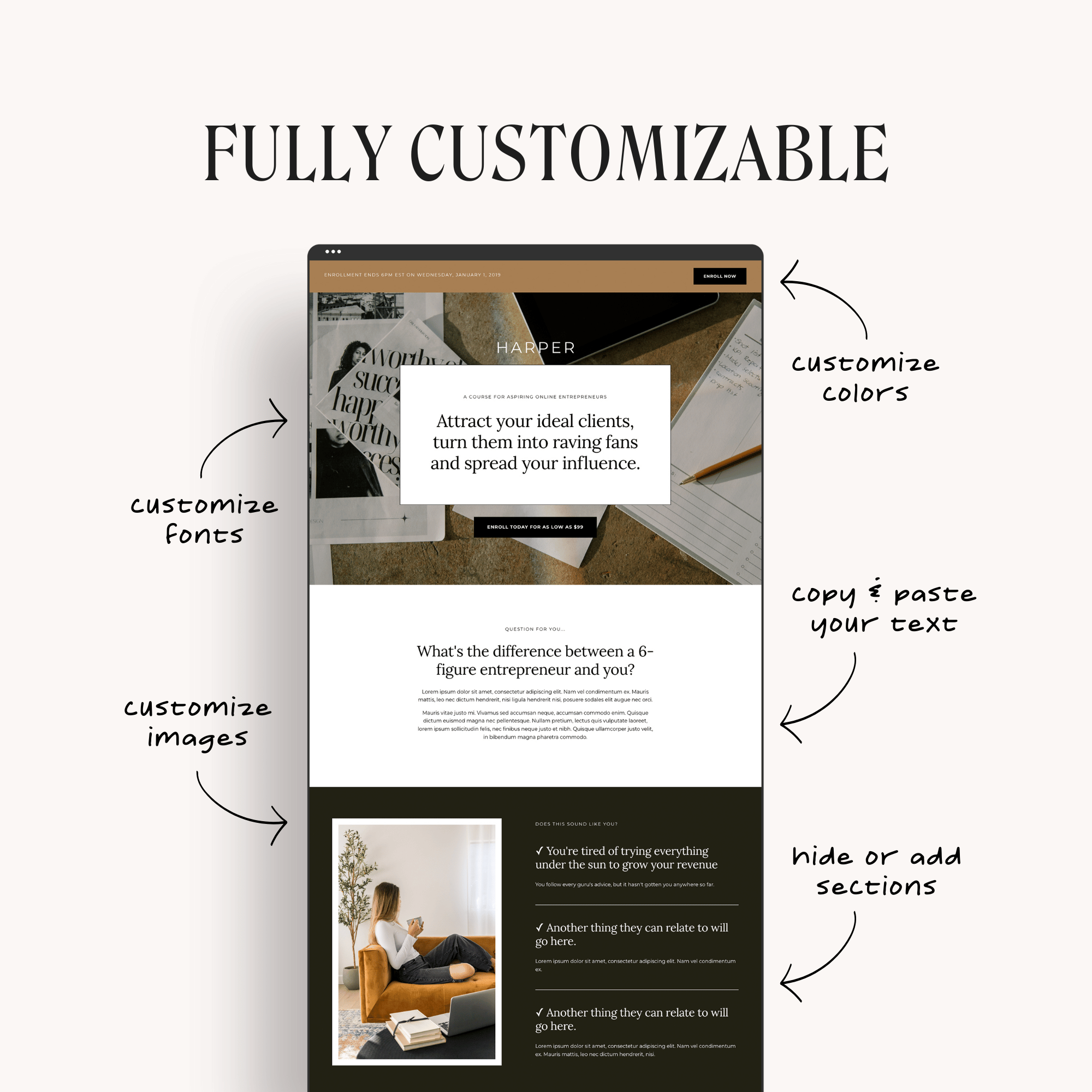 Approachable and persuasive — the Harper Sales Page Template feels like a friendly conversation that leads to a confident yes.