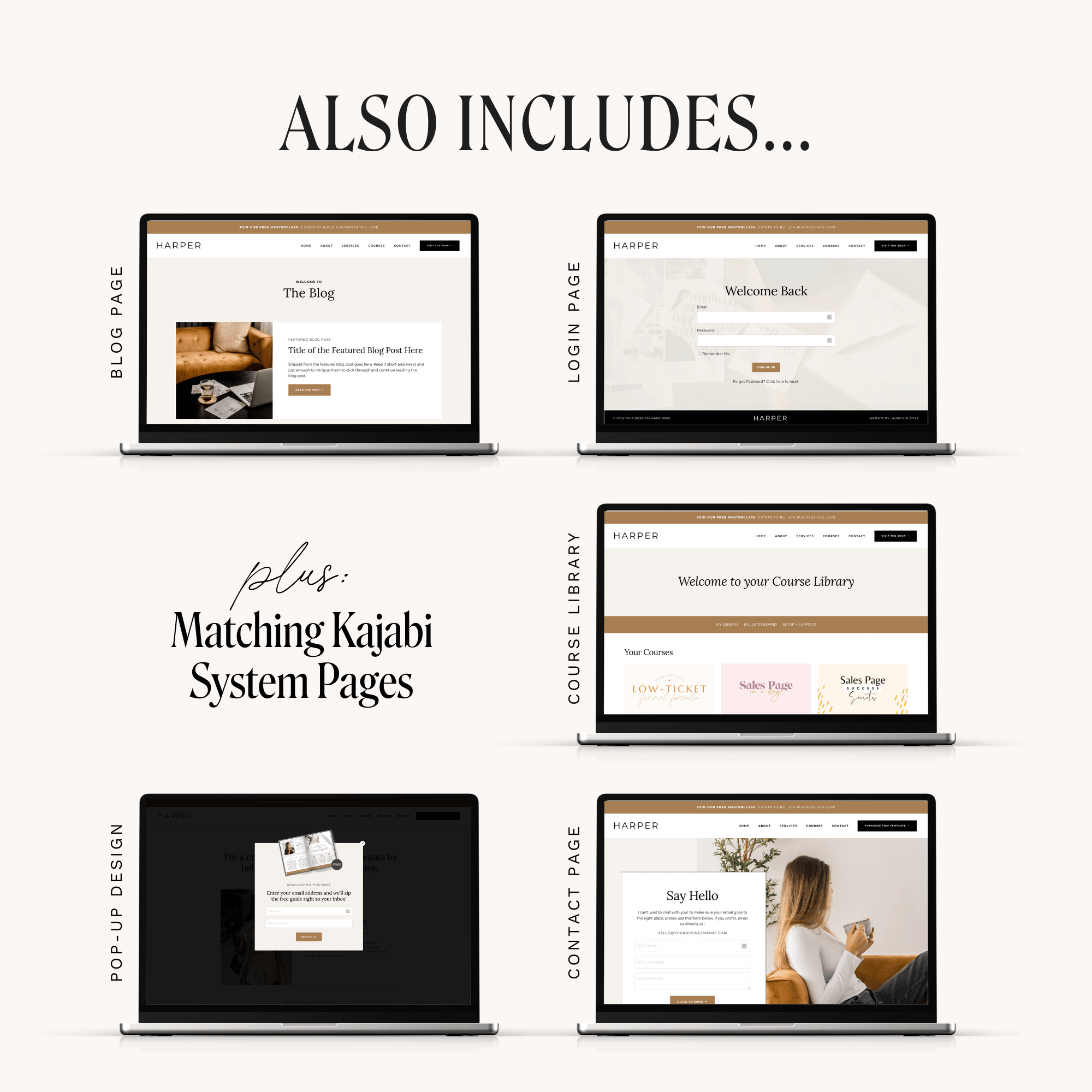 ✔️ 6+ Matching Kajabi System PagesBlog, Blog Posts, 404, Login, Library & Thank You Pages
