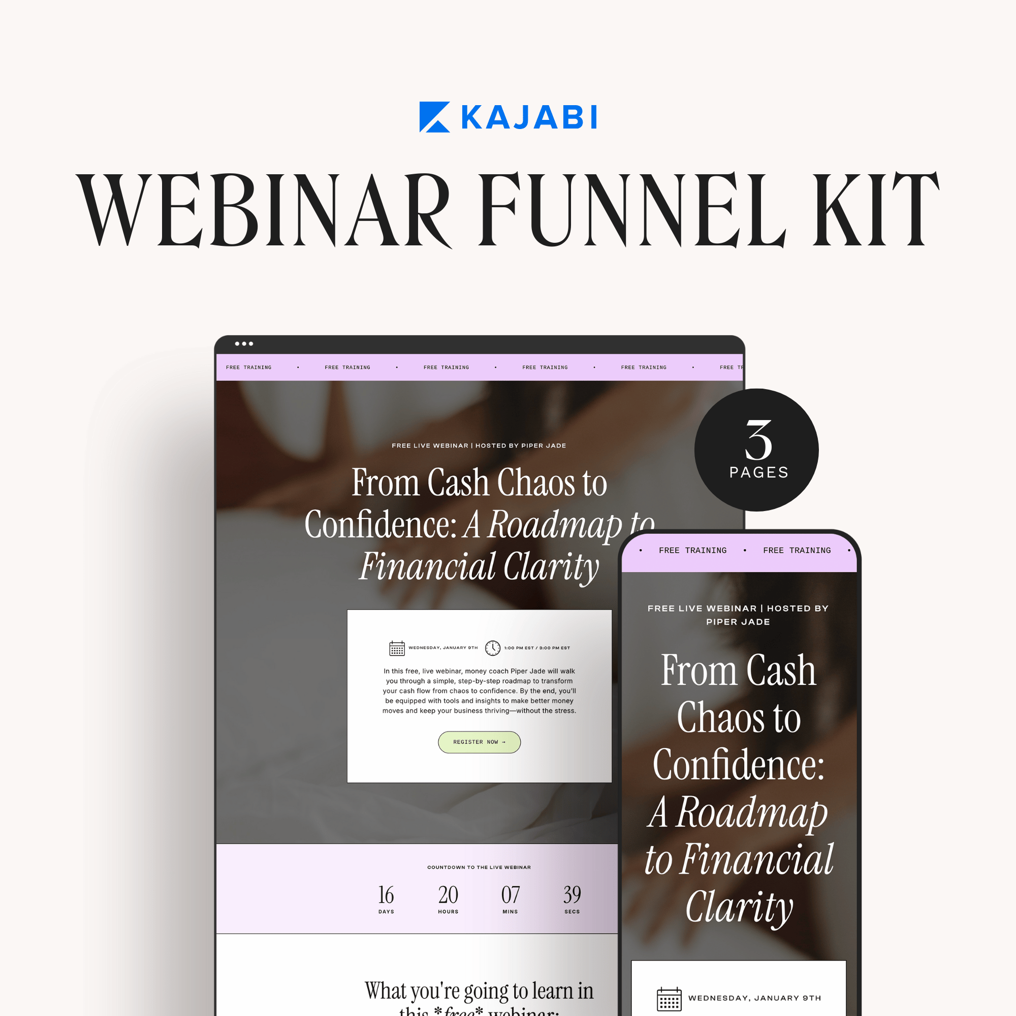 Ready to wow your audience and watch your email list grow? The Piper Kajabi Webinar Funnel Kit has everything you need to host a live or evergreen webinar that converts — whether you're launching a course, promoting your coaching program, or delivering a paid training. Stress-free setup, maximum impact.