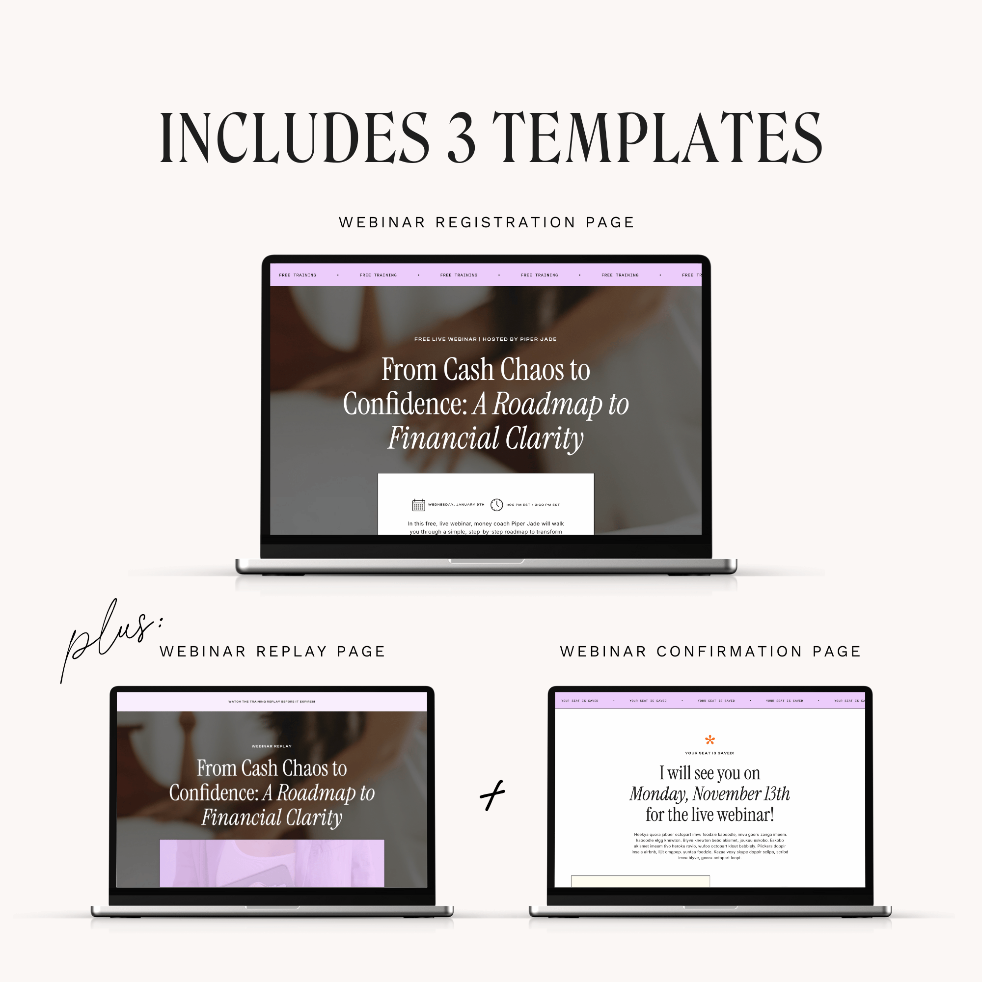 • A matching Webinar Replay Page Template to host your webinar replay and invite attendees to join you inside of your signature program or course.
